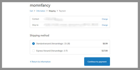 6.Choose the shipping method you prefer. Then click "Continue to payment" to continue.