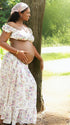 Momnfancy 2-in-1 Boat Neck Crop Print Photoshoot Maternity Maxi Dress
