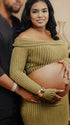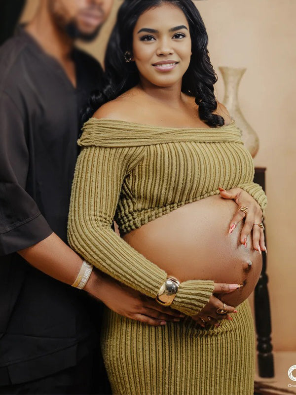 Momnfancy 2-in-1 Cut-out Knitted Boat Neck Maternity Maxi Dress