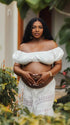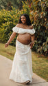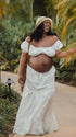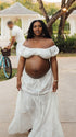 Momnfancy 2-in-1 Lace Splicing Puff Sleeve Crop Maternity Maxi Dress