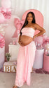 Momnfancy 2-in-1 Tube Top Ribbon Bodycon Crop Baby Shower Maternity Maxi Dress creates a stylish and vibrant maternity look in soft pink with a versatile two-piece design. The tube top features an adjustable ribbon for customizable coverage, while the high-waisted maxi skirt gently supports your bump and follows your curves. Made from stretchy, comfortable fabric, it ensures ease of movement during baby showers, casual gatherings, or summer events. Complete your outfit with a woven clutch and sandals to evoke a resort-ready vibe that helps you radiate youthful energy on every joyful occasion.