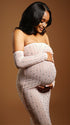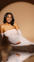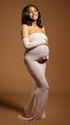 Momnfancy Apricot Off Shoulder Backless Sheer Diamond Bandeau Mermaid Bodycon Prom Evening Party Photoshoot Maternity Maxi Dress