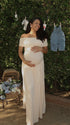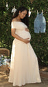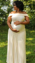 Momnfancy Apricot Off Shoulder Ruched Pleated Photoshoot Maternity Maxi Dress