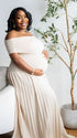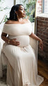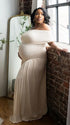 Momnfancy Apricot Off Shoulder Ruched Pleated Plus Size Cap Sleeve Photoshoot Maternity Maxi Dress