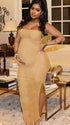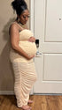 Momnfancy Apricot Ruched Side Slit Maternity Photoshoot Maxi Dress