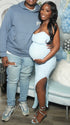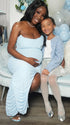 Momnfancy Bandeau Ruched Mesh Bodycon Side Slit Party Baby Shower Maternity Maxi Dress