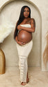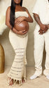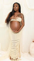 Momnfancy Beige 2-in-1 Cut Out Tassel Photoshoot Maternity Maxi Dress