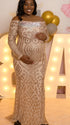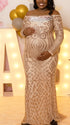 Momnfancy Belly Friendly Off Shoulder Sequin Mermaid Evening Babyshower Maternity Maxi Dress