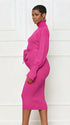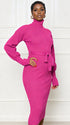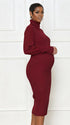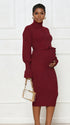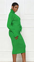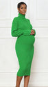 Momnfancy Belt Waist-cinching Knitted High Neck Everyday Maternity Midi Dress