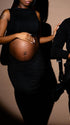 Momnfancy Black Crop 2-in-1 Bodycon Photoshoot Maternity Maxi Dress