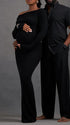 Momnfancy Black Irregular One Shoulder Bodycon Long Sleeve Photoshoot Maternity Maxi Dress