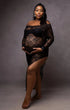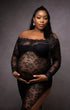 Momnfancy Black Lace Sheer Off Shoulder Side Slit Long Sleeve Irregular Photoshoot Maternity Maxi Dress