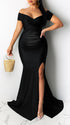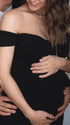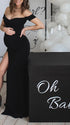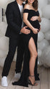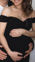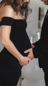 Momnfancy Black Off Shoulder Side Slit Bodycon Baby Shower Photoshoot Gown Maternity Maxi Dress