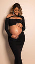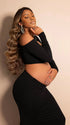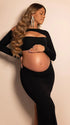 Momnfancy Black One Shoulder Cut Out Crop Bodycon Long Sleeve Evening Gowns Photoshoot Maternity Maxi Dress