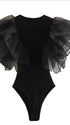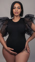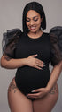 Momnfancy Black Tulle Ruffle Falbala Elegant Maternity Photoshoot Bodysuit