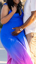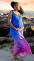 Momnfancy Blue Gradient Color Pleated Cami Maternity Maxi Dress
