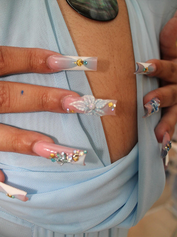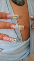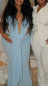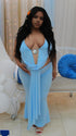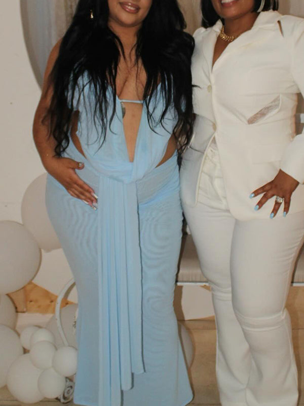 Momnfancy Blue Mesh Halter Neck Crop Draped Backless Bodycon 2-in-1 Party Baby Shower Maternity Maxi Dress
