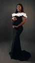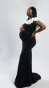 Momnfancy Boat Neck 3D-flowers Bodycon Trailing Photoshoot Maternity Maxi Dress