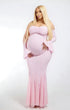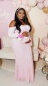 Momnfancy Pink Off Shoulder Bodycon Flare Long Sleeve Lace Mermaid Maternity Maxi Dress