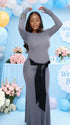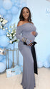 Momnfancy Boat Neck Bowknot Ruched Waist-cinching Baby Shower Maternity Maxi Dress