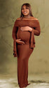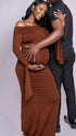Momnfancy Boat Neck Flare Sleeve Maternity Maxi Dresses