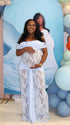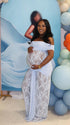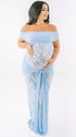 Momnfancy Draped Mermaid Bodycon Lace-up Lace Off-shoulder Party Photoshoot Maternity Maxi Dress