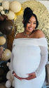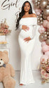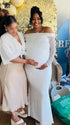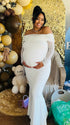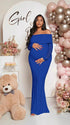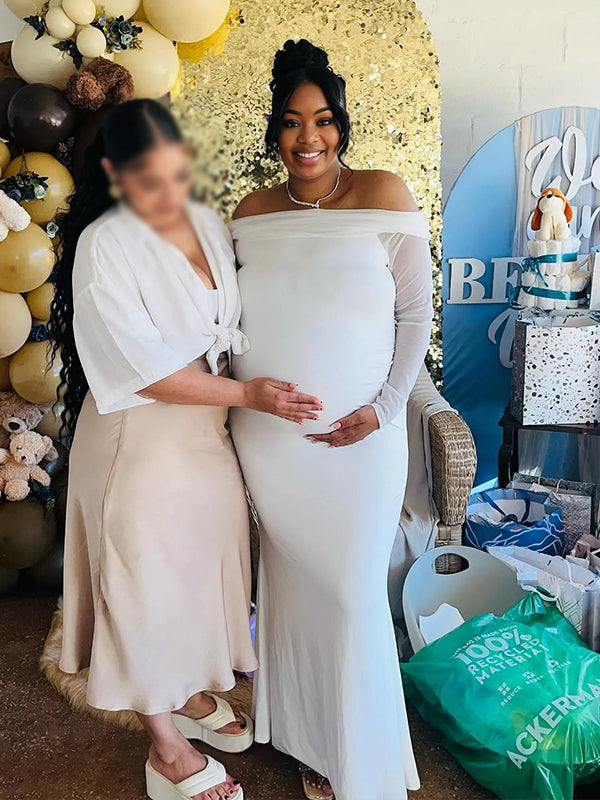 Momnfancy Boat Neck Mermaid Solid Color Bodycon Baby Shower Maternity Maxi Dress