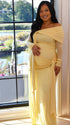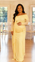 Momnfancy Boat Neck Ruched Bodycon Sheer Twist Photoshoot Maternity Maxi Dress
