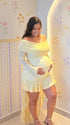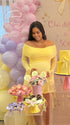 Momnfancy Boat Neck Off Shoulder Ruched Bodycon Baby Shower Long Sleeve Maternity Mini Dress