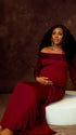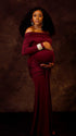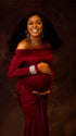 Momnfancy Boat Neck Ruched Ribbon Solid Color Photoshoot Maternity Maxi Dress creates a vintage-inspired maternity look in elegant wine red with a delicate ribbon accent. The boat neckline frames graceful shoulders, while the ruched waist with adjustable ribbon provides flattering definition. The form-fitting silhouette gently supports your bump, and stretchy fabric ensures comfort during maternity photoshoots, formal dinners, or holiday events. Complete your ensemble with pearl earrings and a clutch to enhance the refinement, helping you radiate timeless charm on every special occasion.