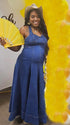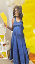Momnfancy Boat Neck Sheer Ruched Maternity Maxi Dresses