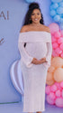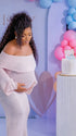 Momnfancy Boat Neck Waist-cinching Knitted Baby Shower Maternity Maxi Dress