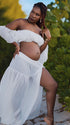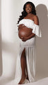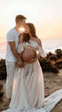 Momnfancy Bohemian Off Shoulder Backless Ruffle 2 piece set Photoshoot Maternity Maxi Dress