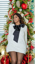 Momnfancy Bowknot Cut-out Flare Sleeve Christmas Photoshoot Maternity Mini Dress