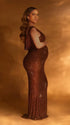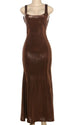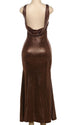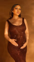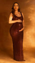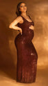 Momnfancy Brown Backless U-Neck Bright Print Bodycon Party Photoshoot Maternity Maxi Dress
