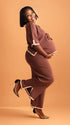 Momnfancy Brown Knitting Split 2-in-1 Casual Home Photoshoot Maternity Sweater Jumpsuit