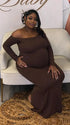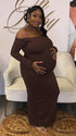 Momnfancy Brown Off Shoulder Backless Long Sleeve Bodycon Baby Shower Maternity Maxi Dress