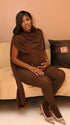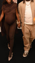 Momnfancy Brown Ruched Cloak Long Sleeve Bodycon Party Baby Shower Maternity Jumpsuit features an elegant brown hue and flowing cape sleeves for a sophisticated maternity look. The form-fitting cut with delicate ruched detailing gracefully accentuates your pregnancy curves, while the cape sleeves add dynamic movement. Crafted from stretchy, comfortable fabric, it ensures ease of movement during baby showers, holiday gatherings, or special events. Complete your ensemble with minimalist metallic accessories and a structured handbag to elevate your style, helping you radiate confidence and elegance at every memorable occasion.