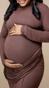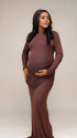 Momnfancy Brown Ruched Long Sleeve Bodycon Mermaid Elegant Photoshoot Maternity Maxi Dress creates a sophisticated maternity look in rich coffee brown with delicate ruched detailing. The long sleeves and mermaid hem work together to sculpt your silhouette, while the waistline's gentle gathering provides elegant support for your bump. Crafted from soft milk silk fabric, it ensures a comfortable and skin-friendly feel. Perfect for maternity photoshoots, formal gatherings, or romantic dinners, this dress can be elevated with metallic jewelry and a clutch to complete a refined ensemble that helps you radiate confidence on every special occasion.