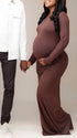 Momnfancy Brown Ruched Long Sleeve Bodycon Mermaid Elegant Photoshoot Maternity Maxi Dress