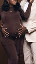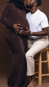 Momnfancy Brown Ruffle Draped Bodycon Long Sleeve Elegant Plus Size Photoshoot Maternity Maxi Dress creates a sophisticated maternity look in rich brown with elegant ruffle accents. The long sleeves and draped detailing sculpt your silhouette, while the waistline's ruffled elements provide graceful support for your bump. Made from stretchy fabric and available in plus sizes, it ensures a comfortable fit for expectant mothers of all body types. Perfect for maternity photoshoots, formal dinners, or special gatherings, this dress can be elevated with metallic jewelry and a clutch to complete a refined ensemble that helps you radiate confidence on every important occasion.