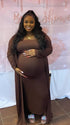 Momnfancy Coffee Bandeau Cardigan 2-in-1 Bodycon Plus Size Baby Shower Maternity Maxi Dress