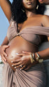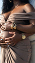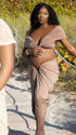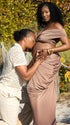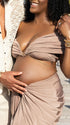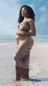 Momnfancy Coffee Off Shoulder Brown Crop Ruched Bodycon 2-in-1 Party V-Neck Photoshoot Maternity Maxi Dress