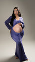 Momnfancy Cut-out Twist Knitted Plunging Neckline Photoshoot Maternity Maxi Dress