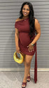 Momnfancy Dark Red One Shoulder Ruched Draped Maternity Mini Dress