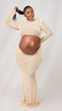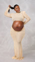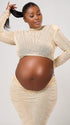 Momnfancy Diamond Mesh Crop 2-in-1 Bodycon Sheer Evening Gown Long Sleeve Photoshoot Maternity Maxi Dress