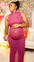 Momnfancy Diamond Trendy Fitted Sleeveless Mesh Club Evening Bodycon Baby Shower Maternity Maxi Dress