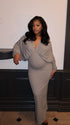 Momnfancy Dolman Sleeve Mermaid Waist-cinching Solid Color Photoshoo Maternity Maxi Dress