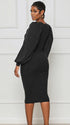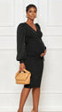 Momnfancy Drawstring Waist-Slim Fit Adjustable Bodycon Everyday Maternity Midi Dress
