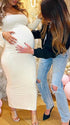 Momnfancy Elegant Long Sleeve Maternity Dress Ultimate Baby Shower Outfit White Bodycon Dress